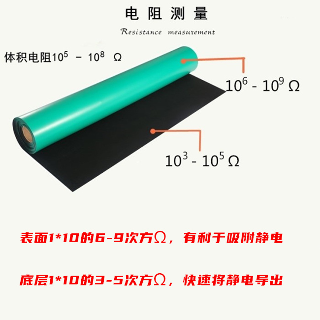防靜電綠色臺墊(桌墊)上綠下黑,雙層復合結構。采用中間網狀結構,釋放靜電效果好,排放快等優(yōu)點。采用抗靜電材料和耗散靜電材料...